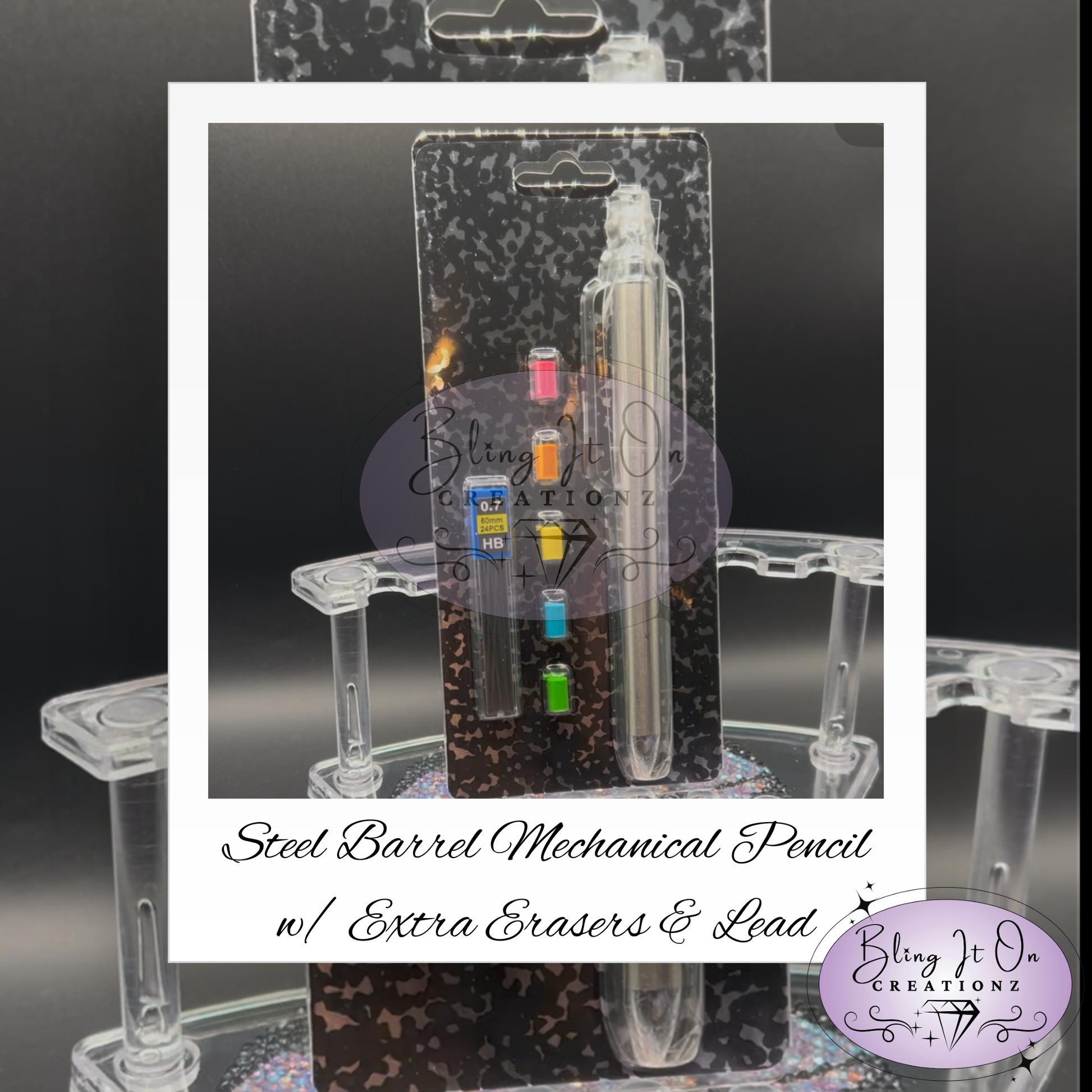 Elevate your writing and drawing experience with our Mechanical Steel Barrel Pencil! It also comes with extra erasers and lead. With a variety of glittery and sparkly themes to choose from, it's a unique and eye-catching addition to any writing or drawing tool collection. Embrace your creative side and make a statement with our Glitter Pencil!